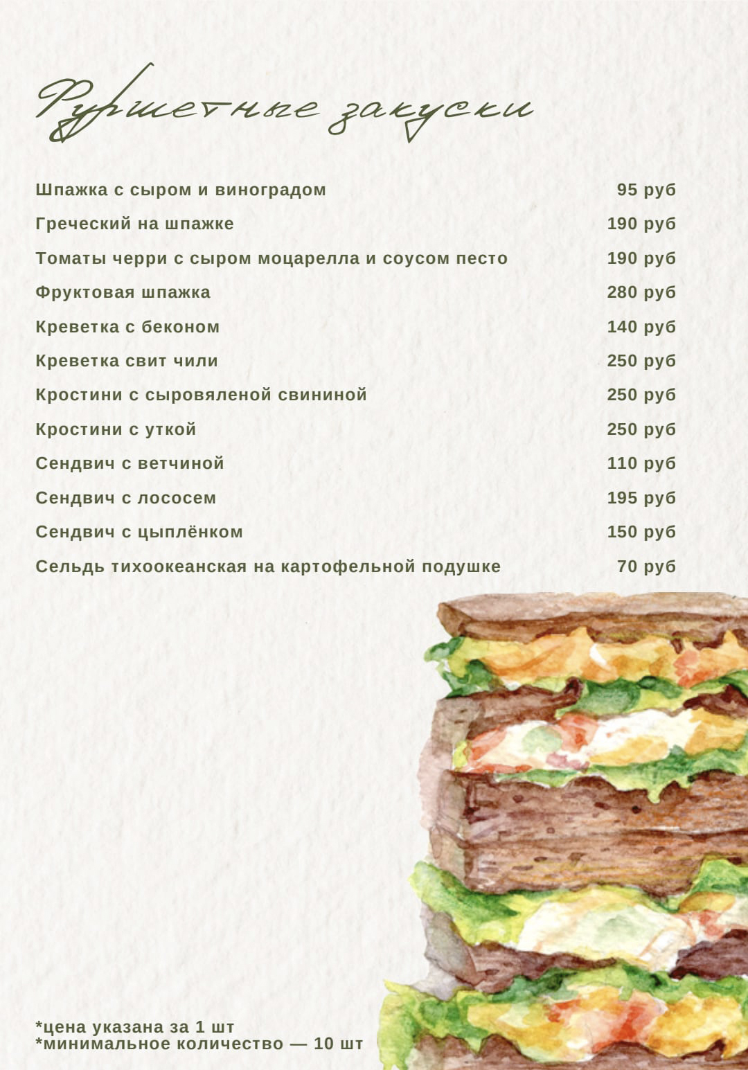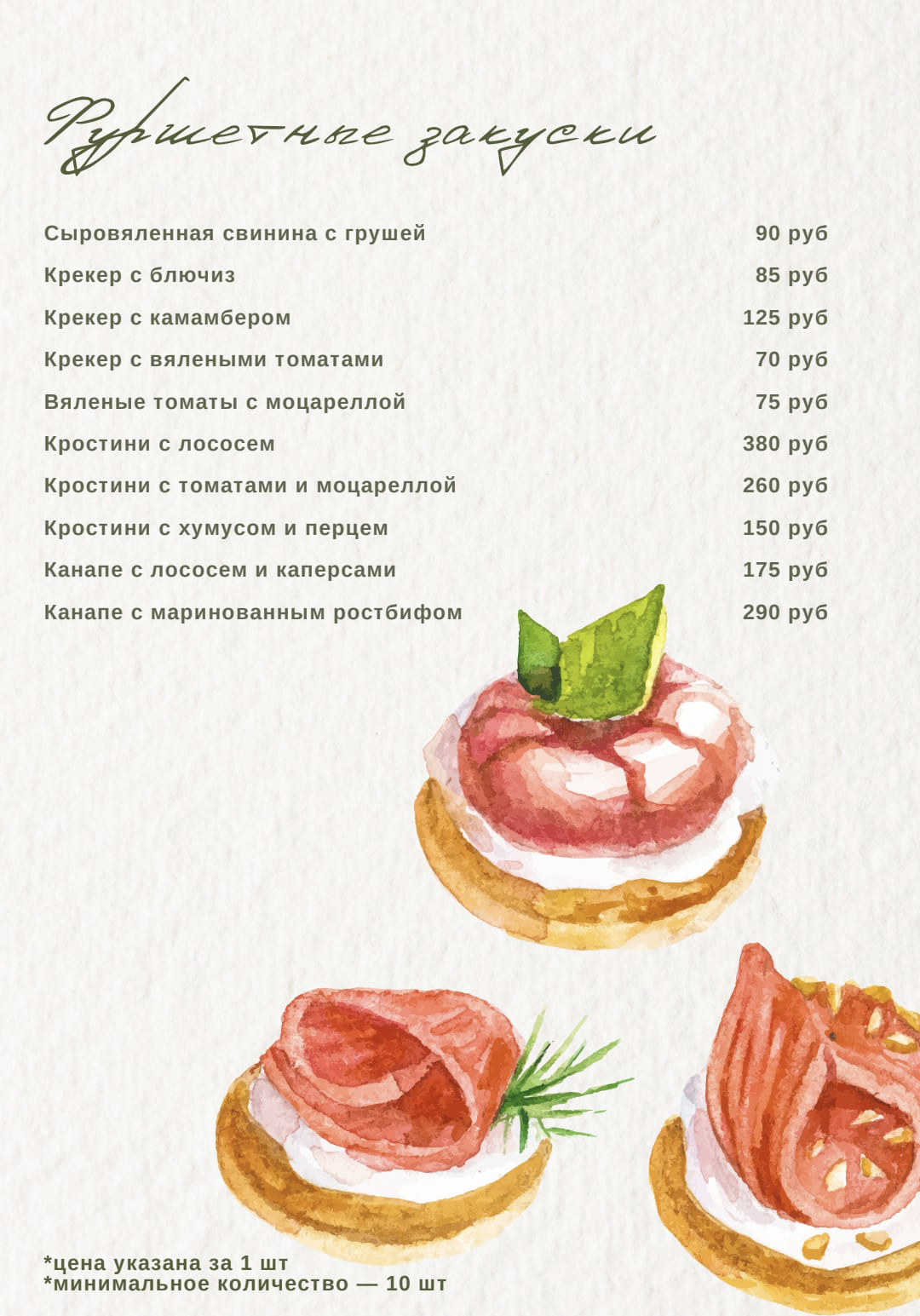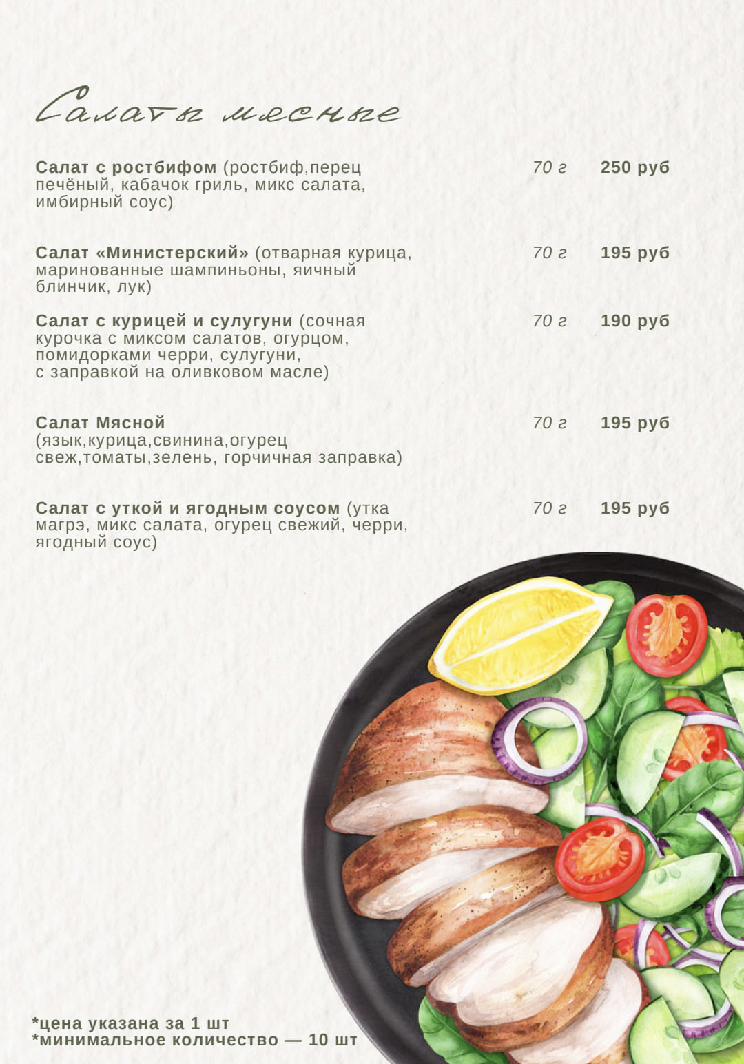 * Банкеты – полноценное обслуживание с горячими блюдами, салатами, закусками и десертами.