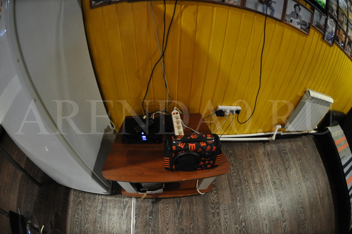 - Уютный уголок отдыха и кухня с барной стойкой, полностью укомплектованная бытовой техникой (холодильник, плита, духовка, чайник, посуда).