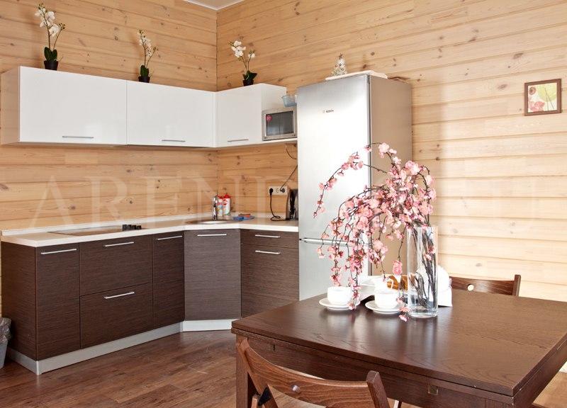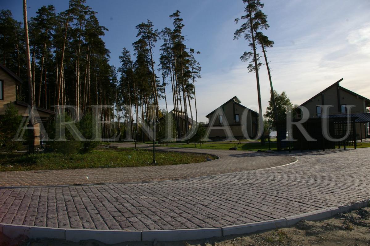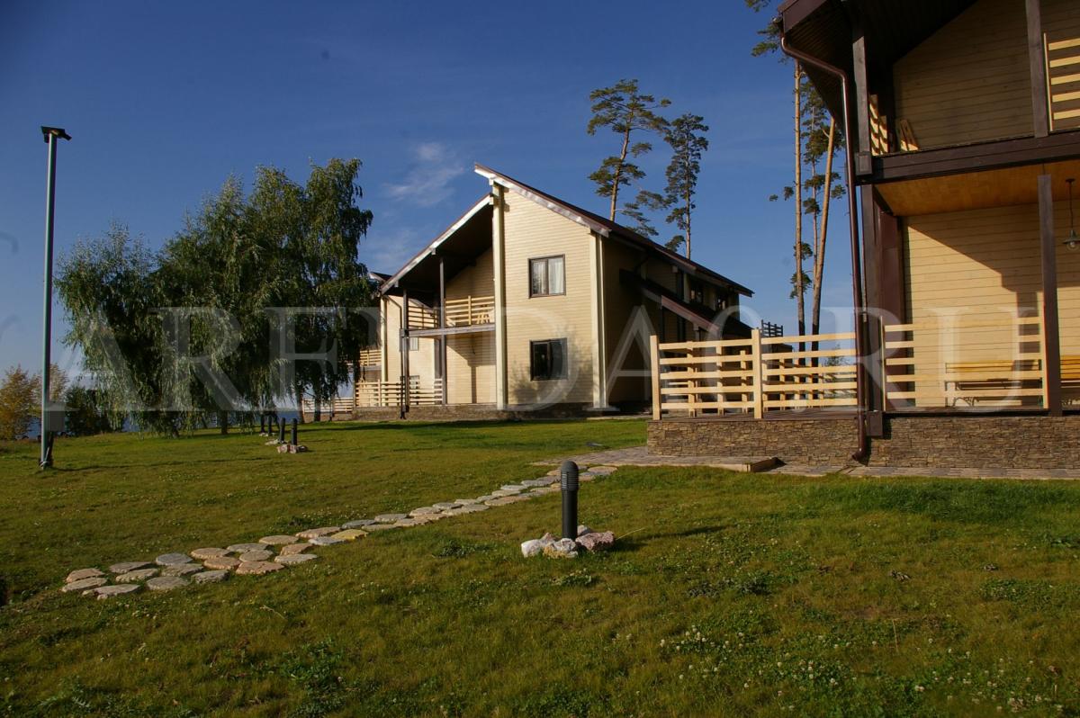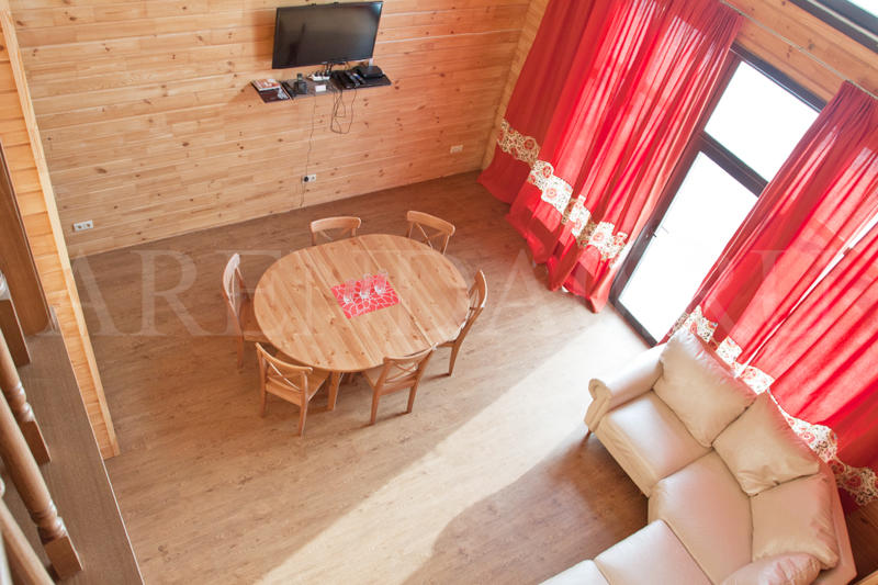- Стиль: Три уютных двухэтажных коттеджа, оформленных из природных материалов.