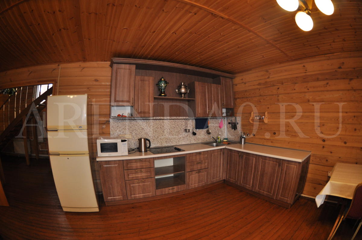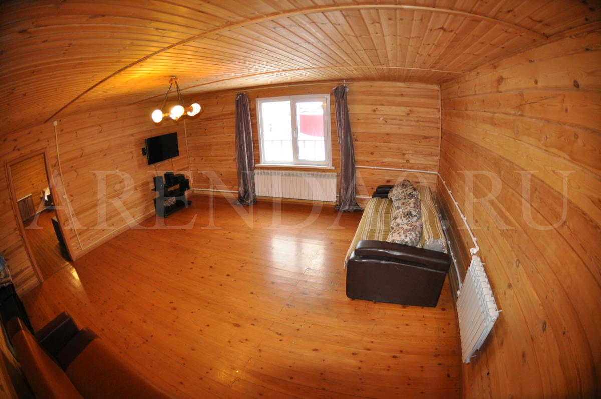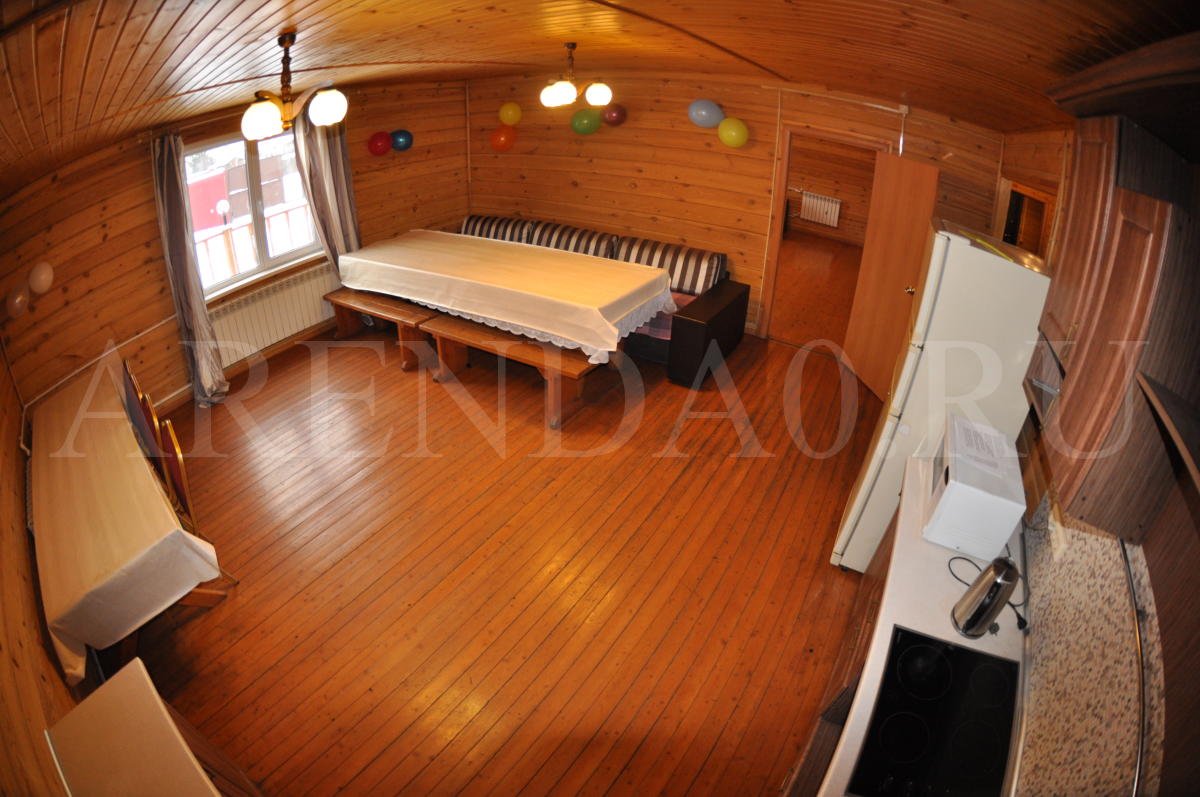 Недавно отстроенный коттедж с уютной деревянной отделкой и всеми удобствами. Строительство было завершено в середине 2014 года. В просторном банкетном зале хватит места и для блюд, и для танцев. Готовить можно прямо на месте, на полностью оборудованной кухне. В доме установлена современная финская сауна, безлимитное использование включено в стоимость аренды. Также к вашим услугам хорошая акустическая система с караоке и большой плазменный телевизор. Желающие остаться на ночь могут разместиться в 4ёх уютных спальнях. На улице предусмотрена мангальная зона, беседка и 5 парковочных мест.