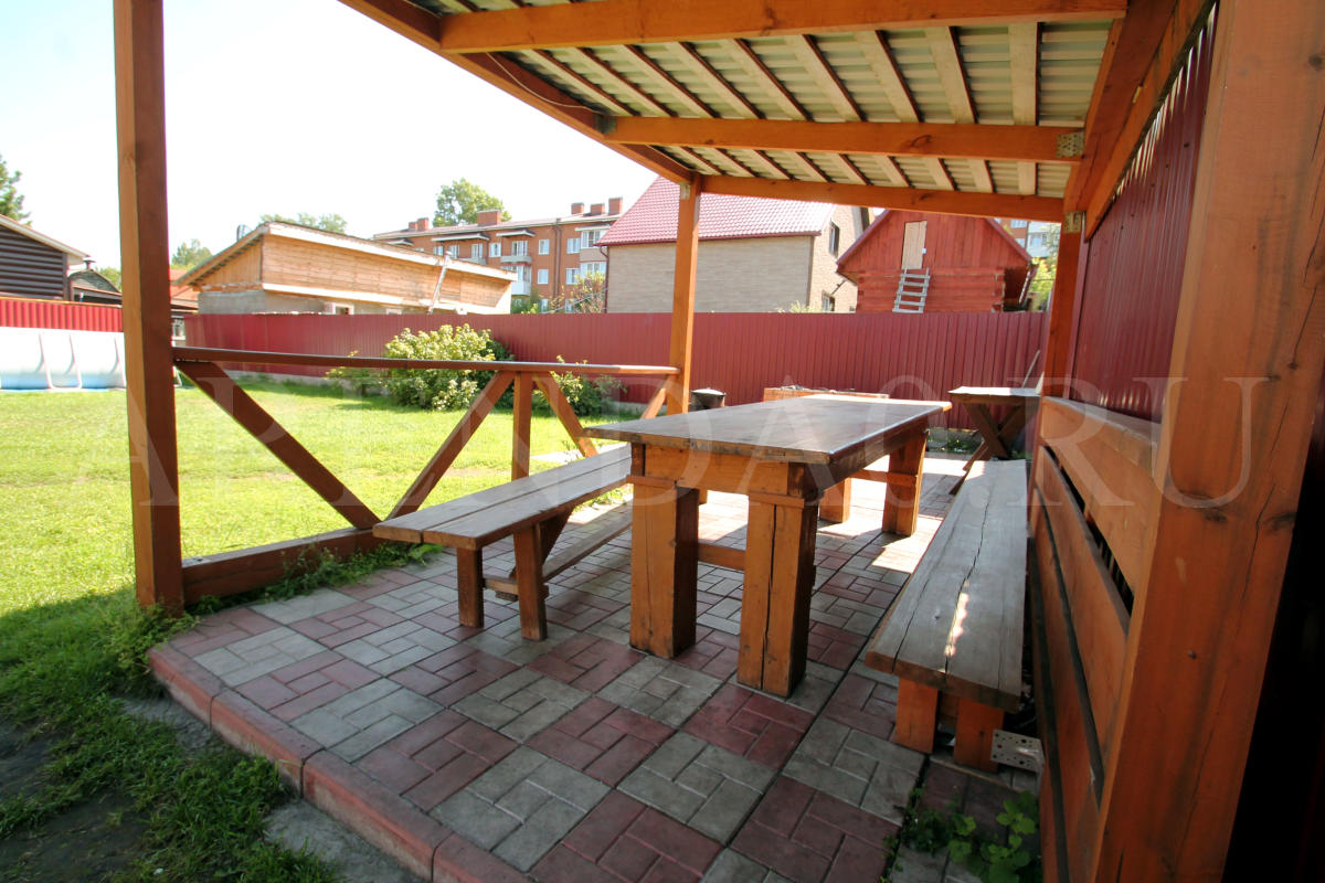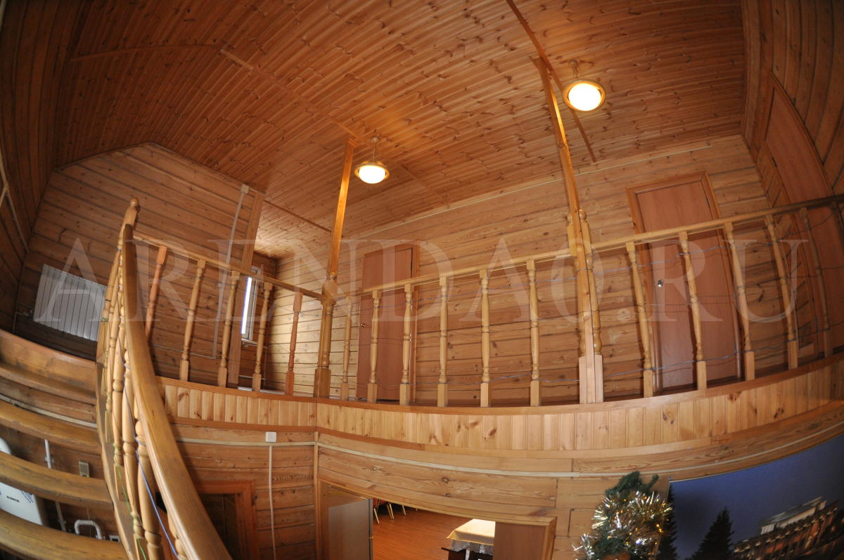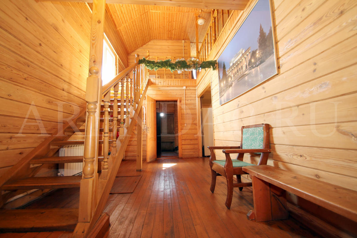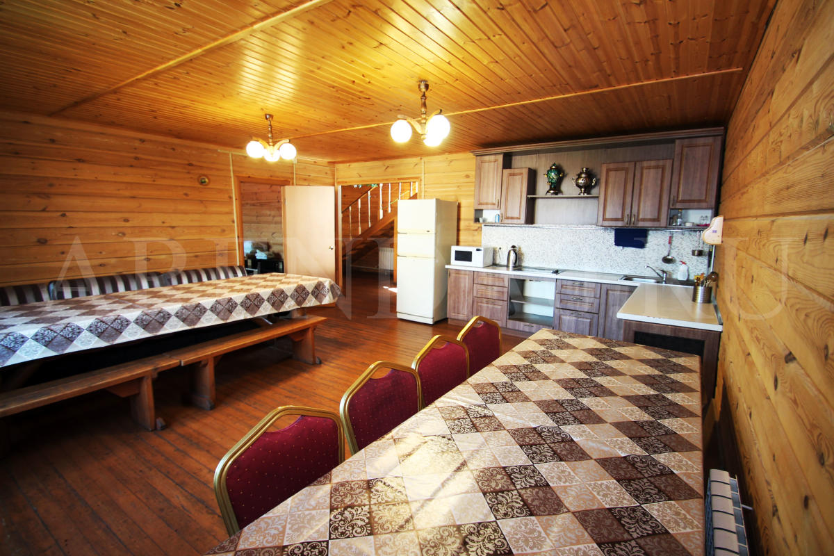 Недавно отстроенный коттедж с уютной деревянной отделкой и всеми удобствами. Строительство было завершено в середине 2014 года. В просторном банкетном зале хватит места и для блюд, и для танцев. Готовить можно прямо на месте, на полностью оборудованной кухне. В доме установлена современная финская сауна, безлимитное использование включено в стоимость аренды. Также к вашим услугам хорошая акустическая система с караоке и большой плазменный телевизор. Желающие остаться на ночь могут разместиться в 4ёх уютных спальнях. На улице предусмотрена мангальная зона, беседка и 5 парковочных мест.