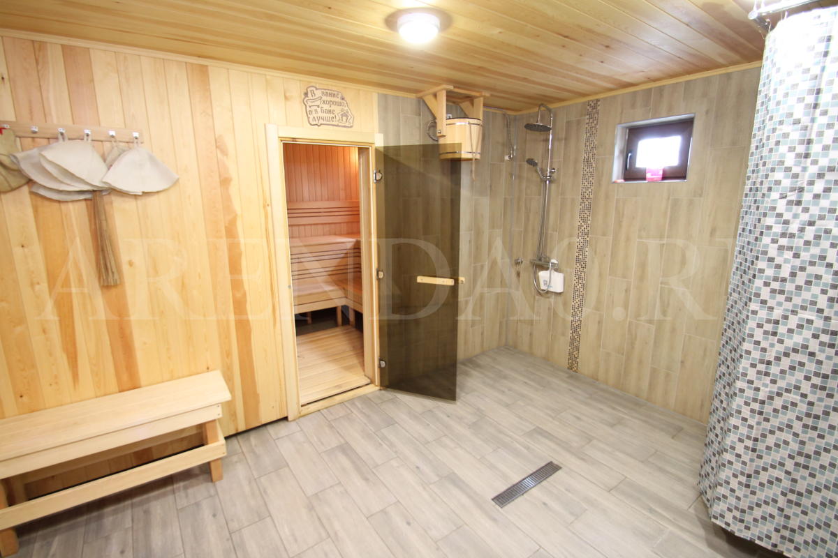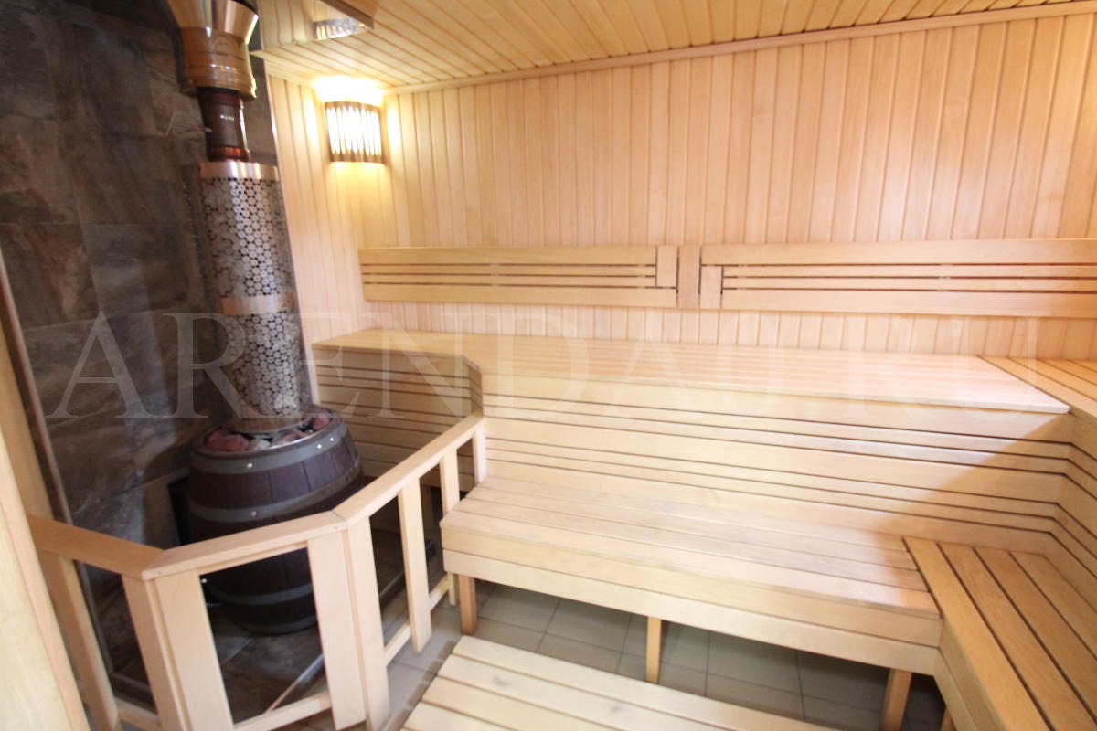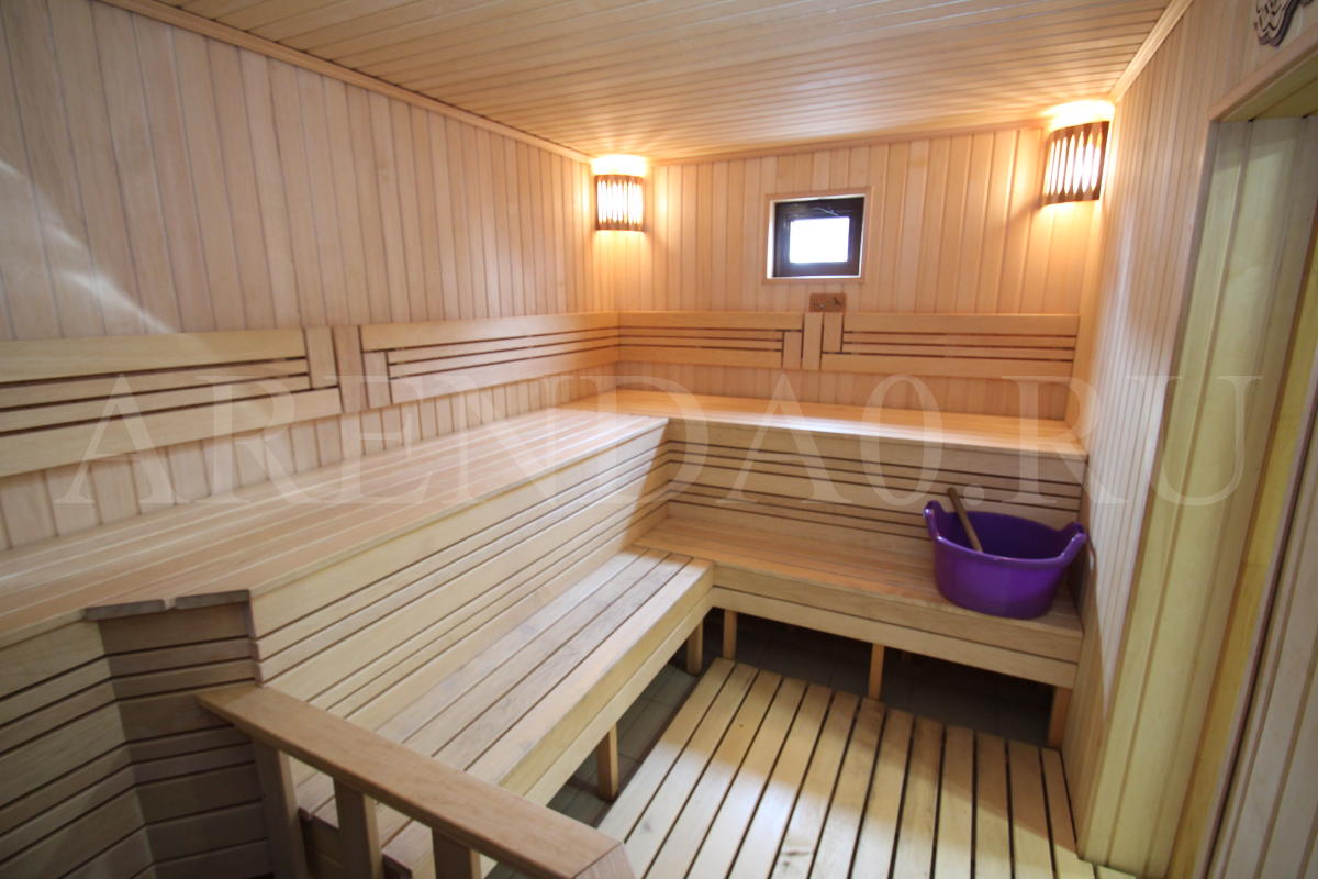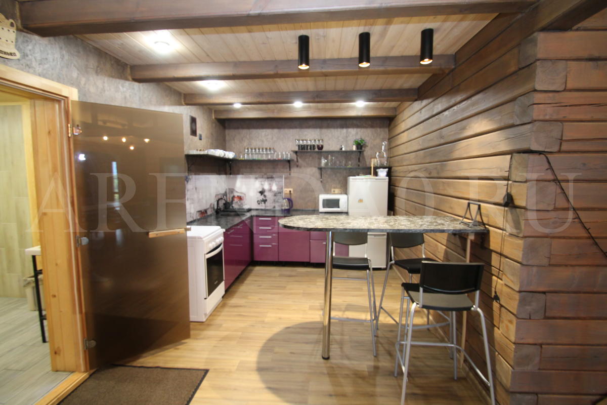 1 этаж: Большая гостиная с караоке, полностью укомплектованная кухня с барной стойкой, дровяная парная и 2 спальни.