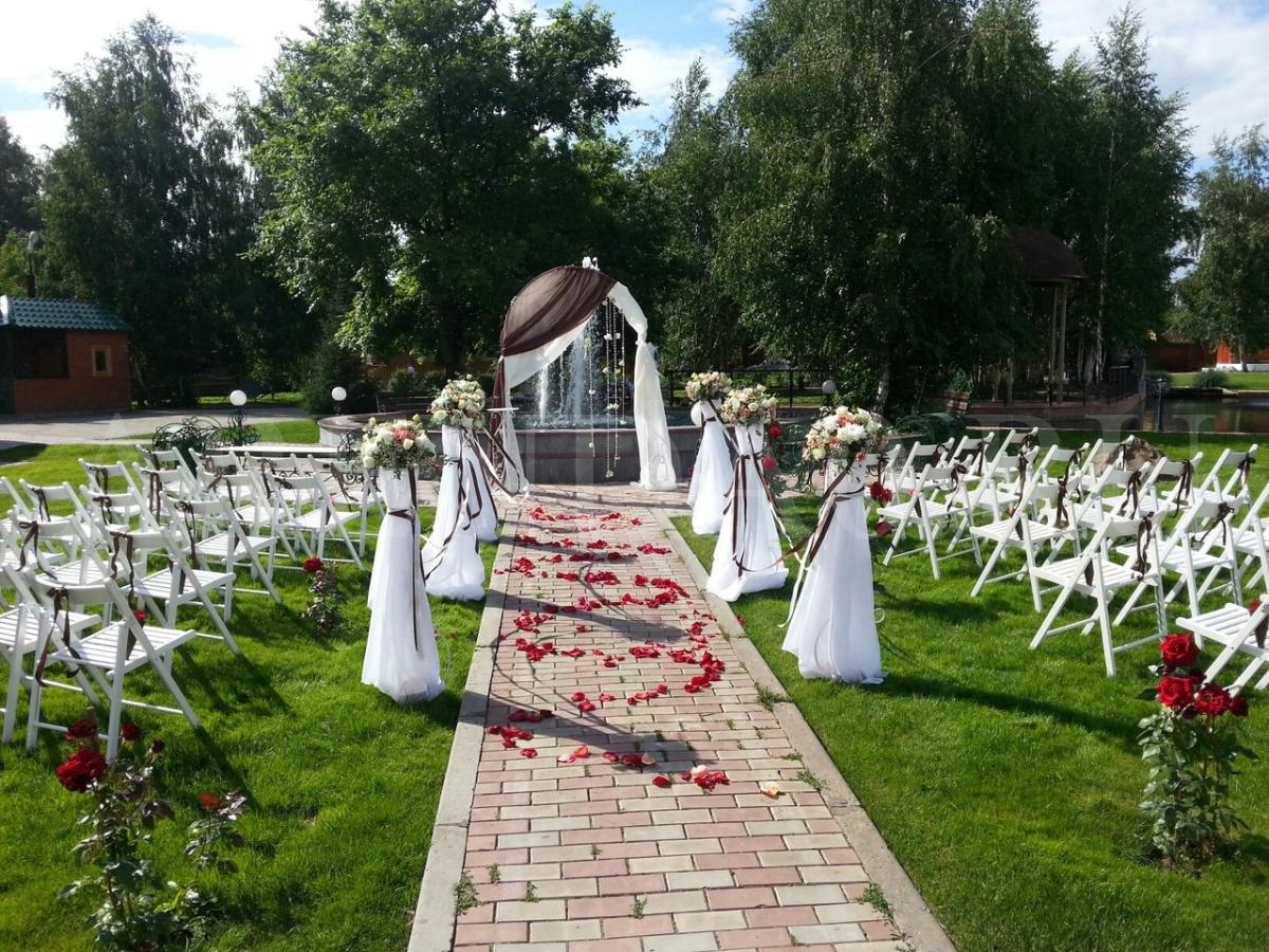 - Площадка для салютов, два фонтана, пруд, водопад, костровище, парковка.