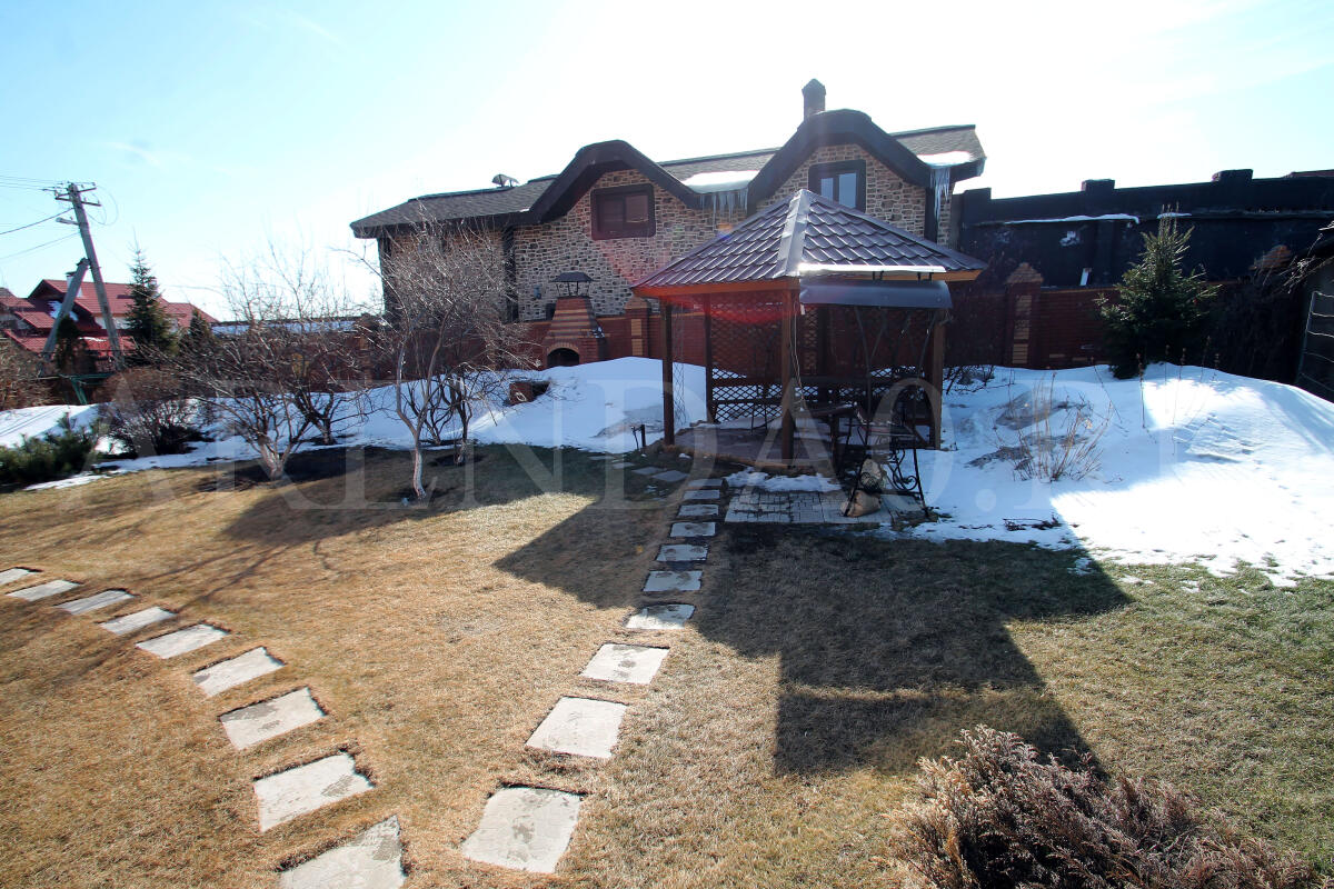 Ухоженная территория: зеленая зона и беседка для отдыха.