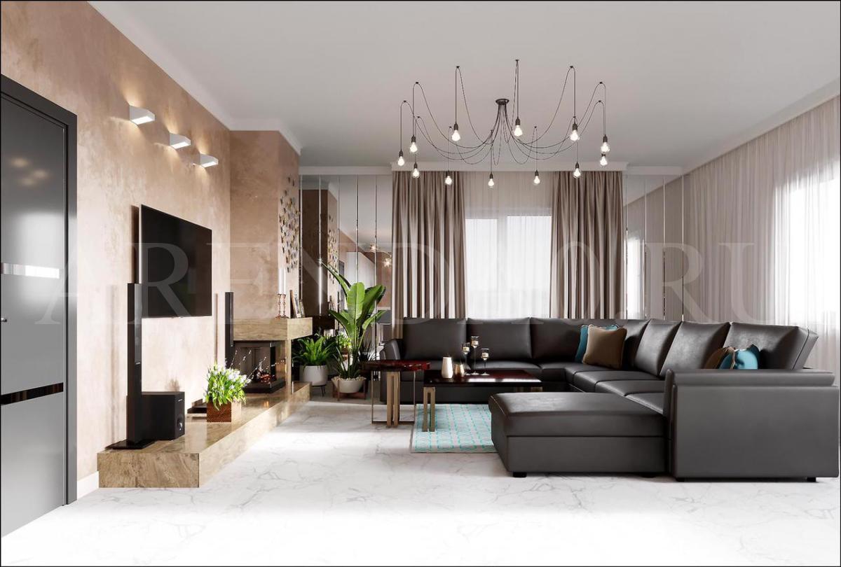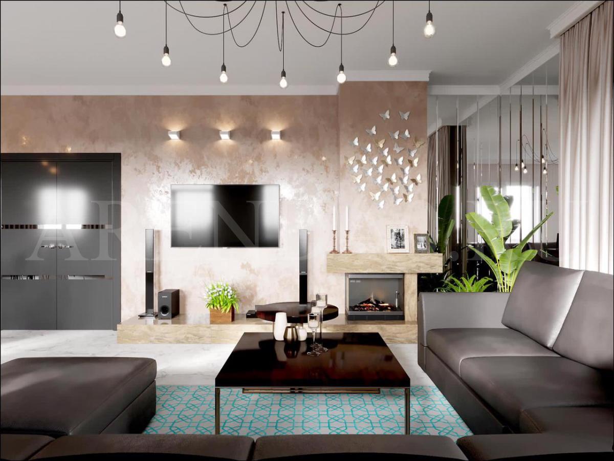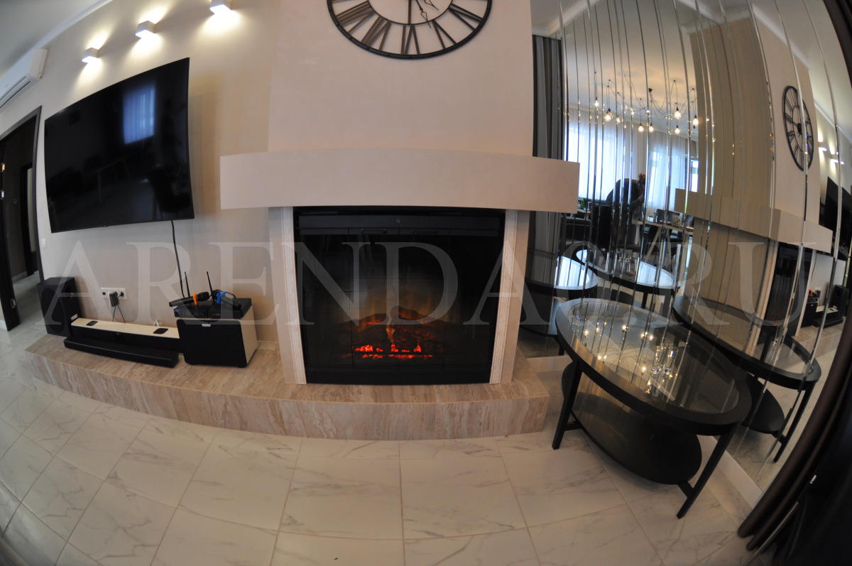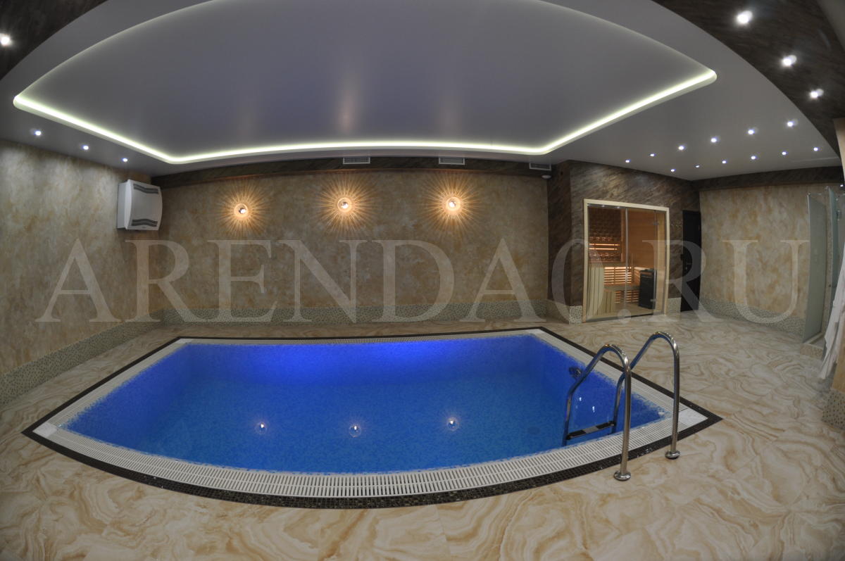 Роскошный интерьер: просторные помещения, искусственный камин, теплый бассейн и сауна.